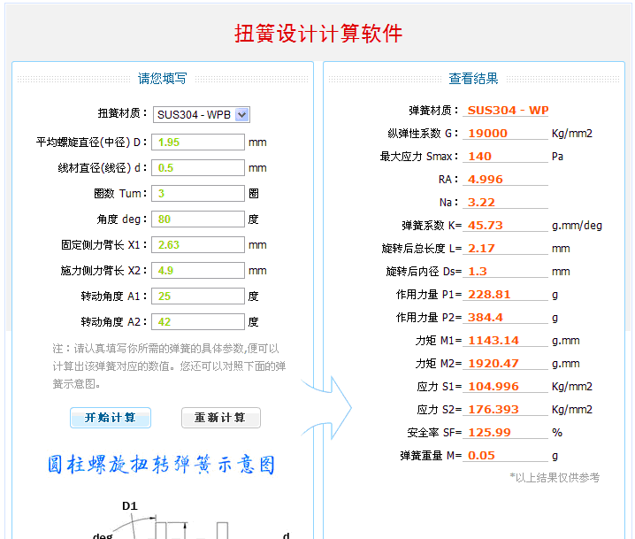 我們?yōu)榱朔奖銖V大從事彈簧設(shè)計(jì)工作的朋友,專(zhuān)門(mén)制作了一款扭簧設(shè)計(jì)軟件,您可以點(diǎn)擊下圖直接進(jìn)入,或者點(diǎn)擊此處進(jìn)入 【彈簧設(shè)計(jì)公式】
