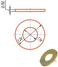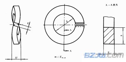 彈簧墊圈用作防松,外徑比普通墊圈小,以保證緊壓在螺母底面范圍之內(nèi)。彈簧墊圈開槽的方向應(yīng)是阻止螺母松動的方向,在圖中應(yīng)畫成與水平線成60ο上向左,下向右的兩條線。