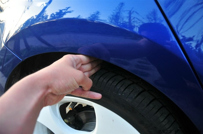 前輪輪胎與車身的距離,2指左右